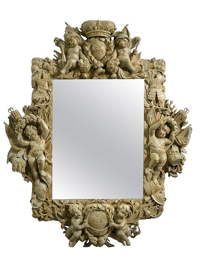 The first is a Dutch Baroque stone-painted carved lime wood mirror worth $102,000. Dated back at 1711, Baroque is one of the many styles of antique mirrors worth money and features a beautiful frame of intricately carved wood of trophies of arms.
