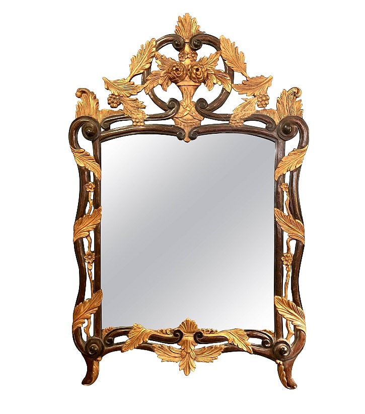 For instance, the Gothic era featured mirrors that often had an oak frame, intricate carvings, and an arch shape. For Baroque, the frames are usually gold or silver gilding. Rococo frames were often made of walnut or mahogany wood, which is pretty dark comparatively, gilded, ornate, and heavy.