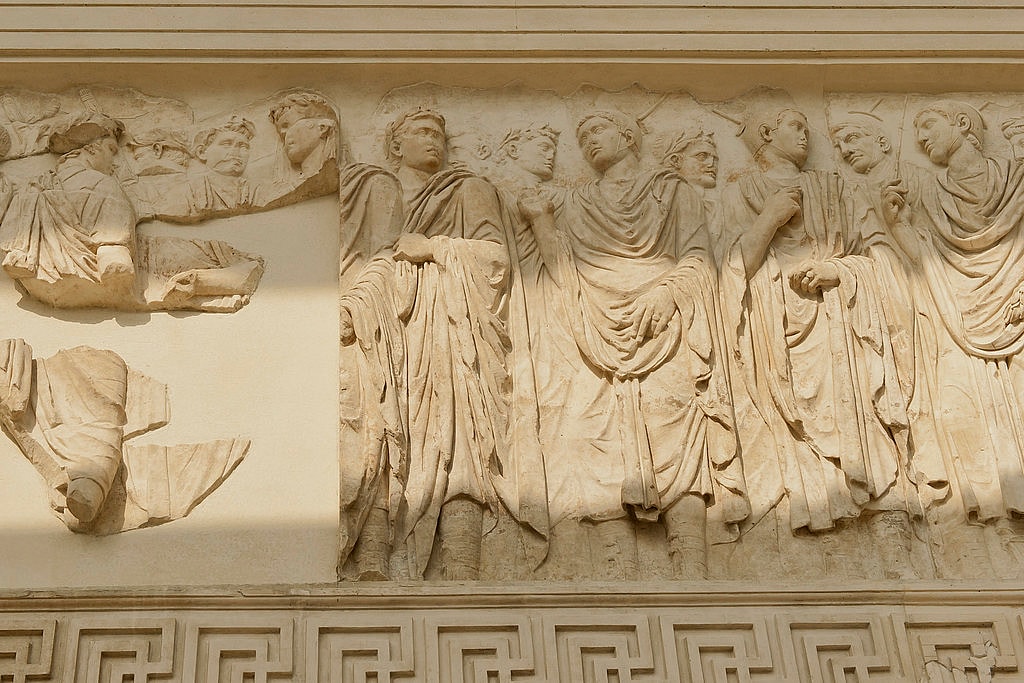The Ara Pacis is notable for its detailed and symbolic reliefs, including the Procession of the Imperial Family and the Tellus Relief, which represent the prosperity and peace achieved under Augustus’s reign. The altar’s decoration reflects the political and cultural ideals of the Augustan era, emphasizing themes of peace, prosperity, and imperial legitimacy.