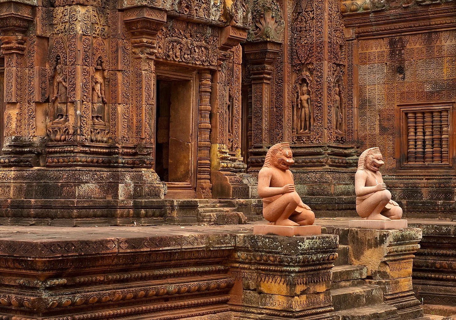 The empire left behind beautiful structures, with one being considered one of Cambodia’s most impressive temples, the rose-colored sandstone shrine of Banteay Srei, which is built on the outskirts of the capital (shown in photo).