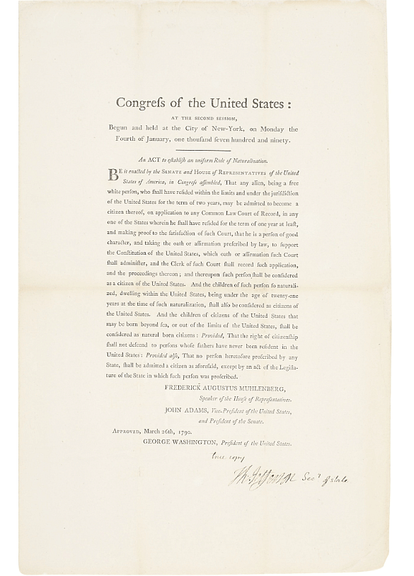 10. Thomas Jefferson’s First Naturalization Act Signed 1790, $68,750