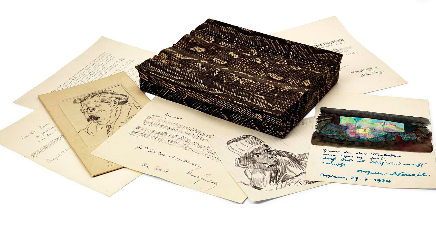 This collection holds some of the rarest historical documents ever. The collection includes musical quotations signed by Bartók, Bach, and Schoenberg. There are drawings and designs signed by Josef Capek, architectural design from Hoffmann, and even literary tributes by Karel Capek.