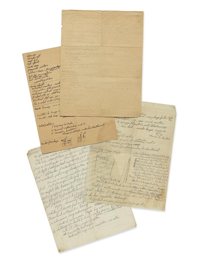 The 1944 documents listed on Sotheby’s are drafts for his lecturers on the atomic bomb with fellow members of the Manhattan Project, covering topics such as design and chemistry. This manuscript is possibly the draft for this famous talk given at Oak Ridge, the top-secret location of the Clinton Engineer Works. That being said, it went for a hefty price of $156,250.