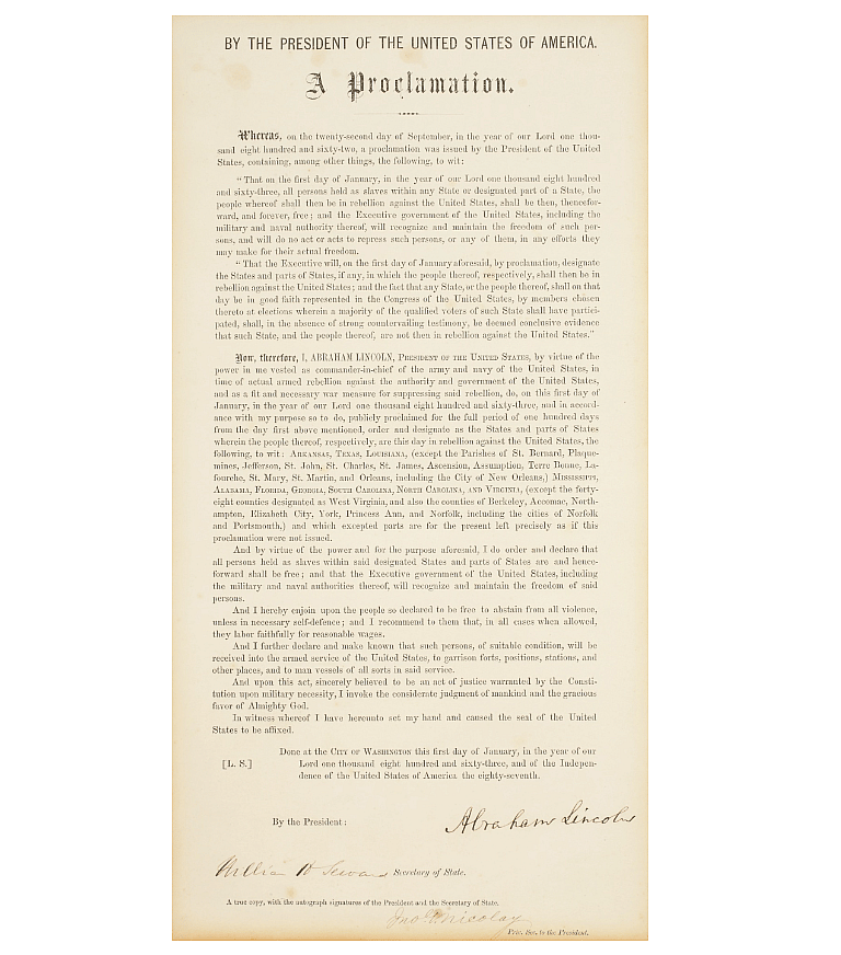This is just one of 27 surviving editions of the 48 that were printed. The 1864 document was an executive order during the Civil War that freed the millions of African Americans who were enslaved. This incredible document was sold in 2012 to David Rubenstein, managing director of the Carlyle Group investment firm, and will go on public exhibit somewhere in Washington.