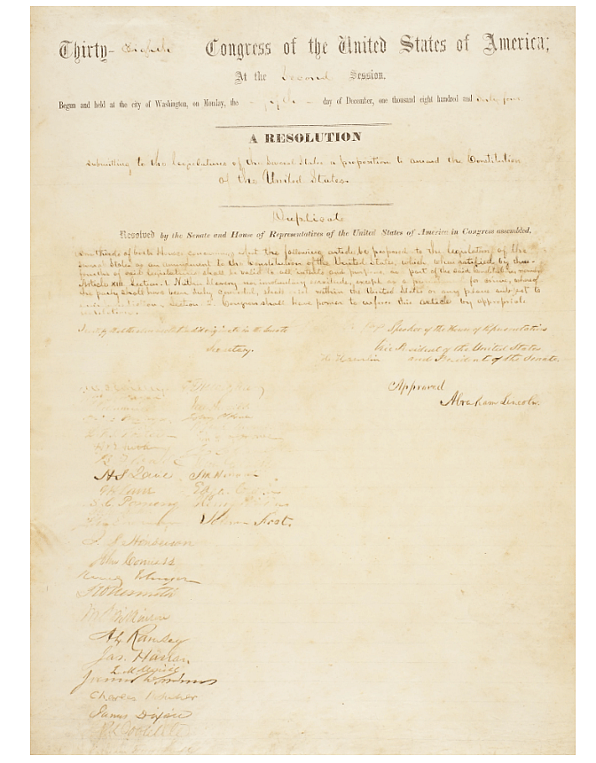 5. The Thirteenth Amendment 1865, $2.41 Million