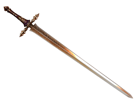 The sword is depicted as a long blade that is both straight and double edge, but due to the edge being rather blunt, it can be considered for a Claymore.