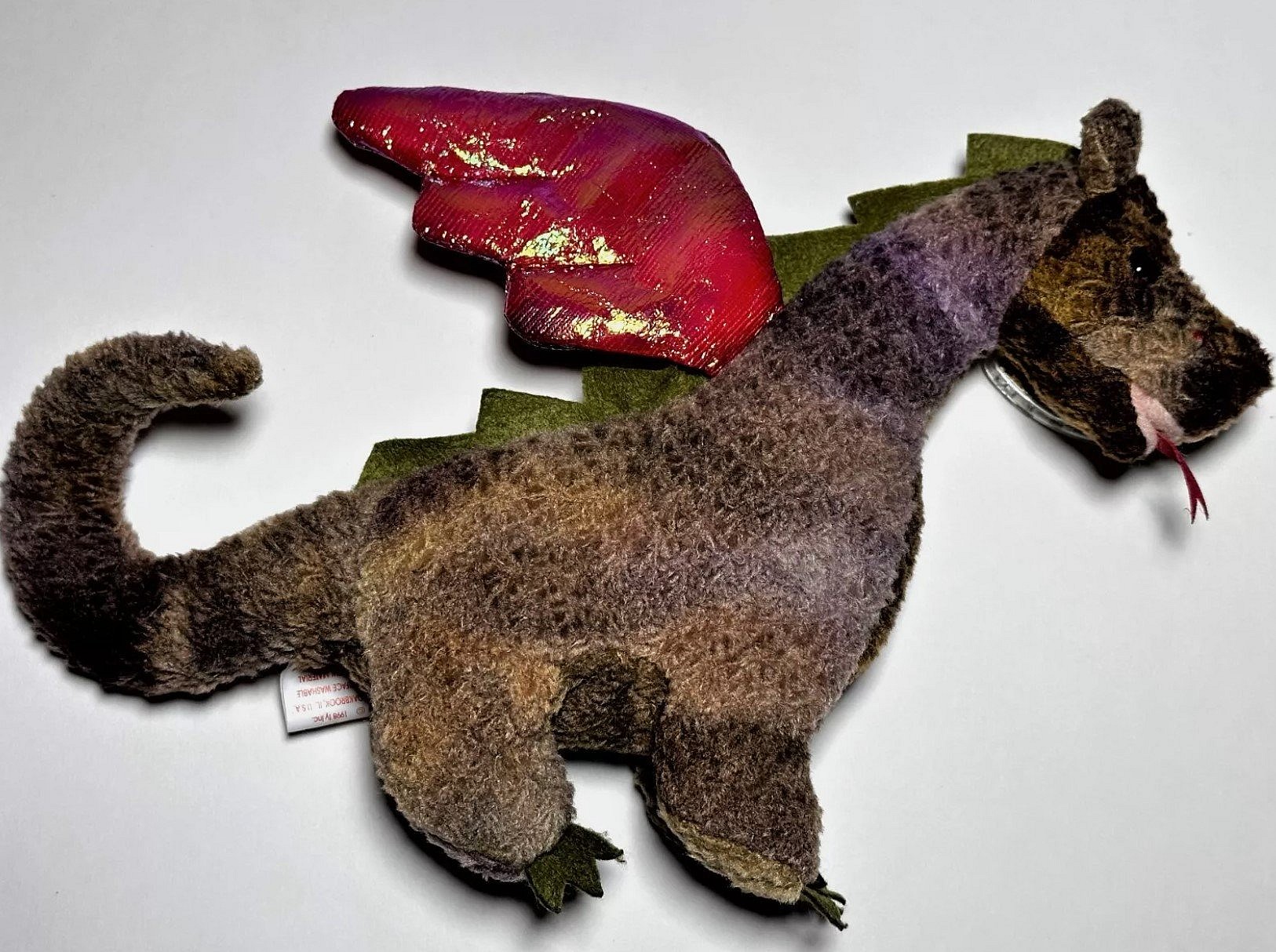 For Scorch, his $12,000 value comes from a Tush Tag Error where Oak Brook is spelled Oakbrook. This particular Scotch is the tie-dye various, not the brown, with iridescent red wings and green felt sikes that match his claws.