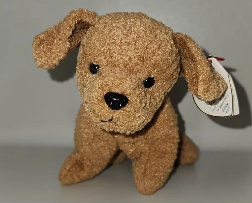 Tuffy the Terrier is a normal Beanie Baby that isn’t valued high until there are errors. The average price for the error-filled pup is around $10,000 to $18,000, depending on the condition. Tuffy is a light brown terrier with a dark brown-black tail.