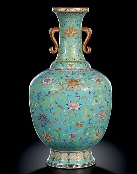 18. Chinese Turquoise Bajixiang Imitation Cloisonne Vase, $5.49 Million