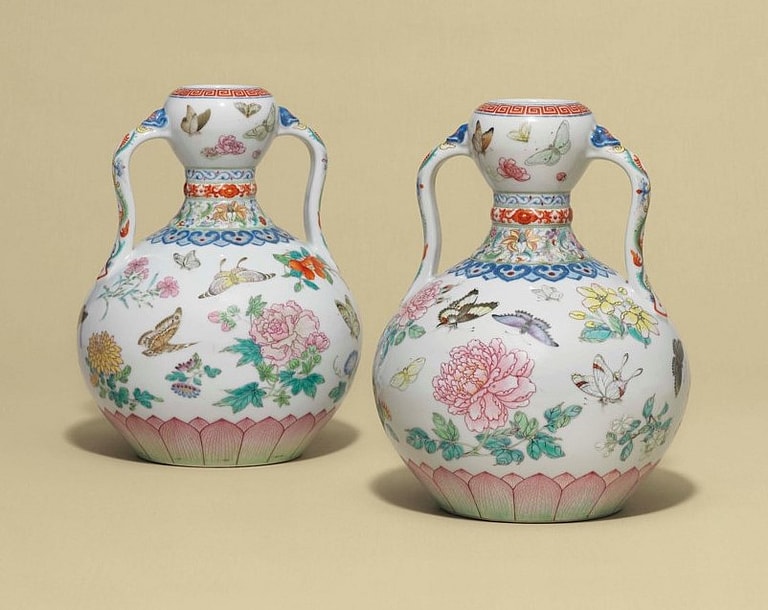 5. Chinese Famille-Rose Butterfly Double-Guard Vase Pair, $19.44 Million