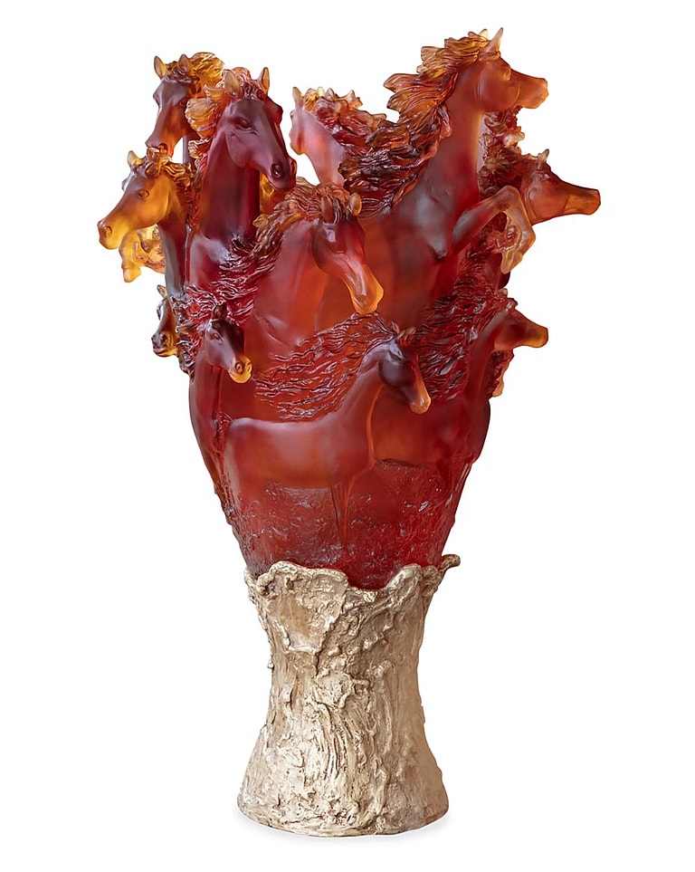 What is the most expensive vase that you can purchase right now? That title belongs to the Amber Cavalcade Prestige Horse vase, which is worth a crazy $93,750. This incredible piece of artwork is from Jean Daum, an artist from 1878 who worked in beautiful glassmaking, from Art Nouveau to Decorative Arts. You can purchase this stunning piece through Neiman Marcus.