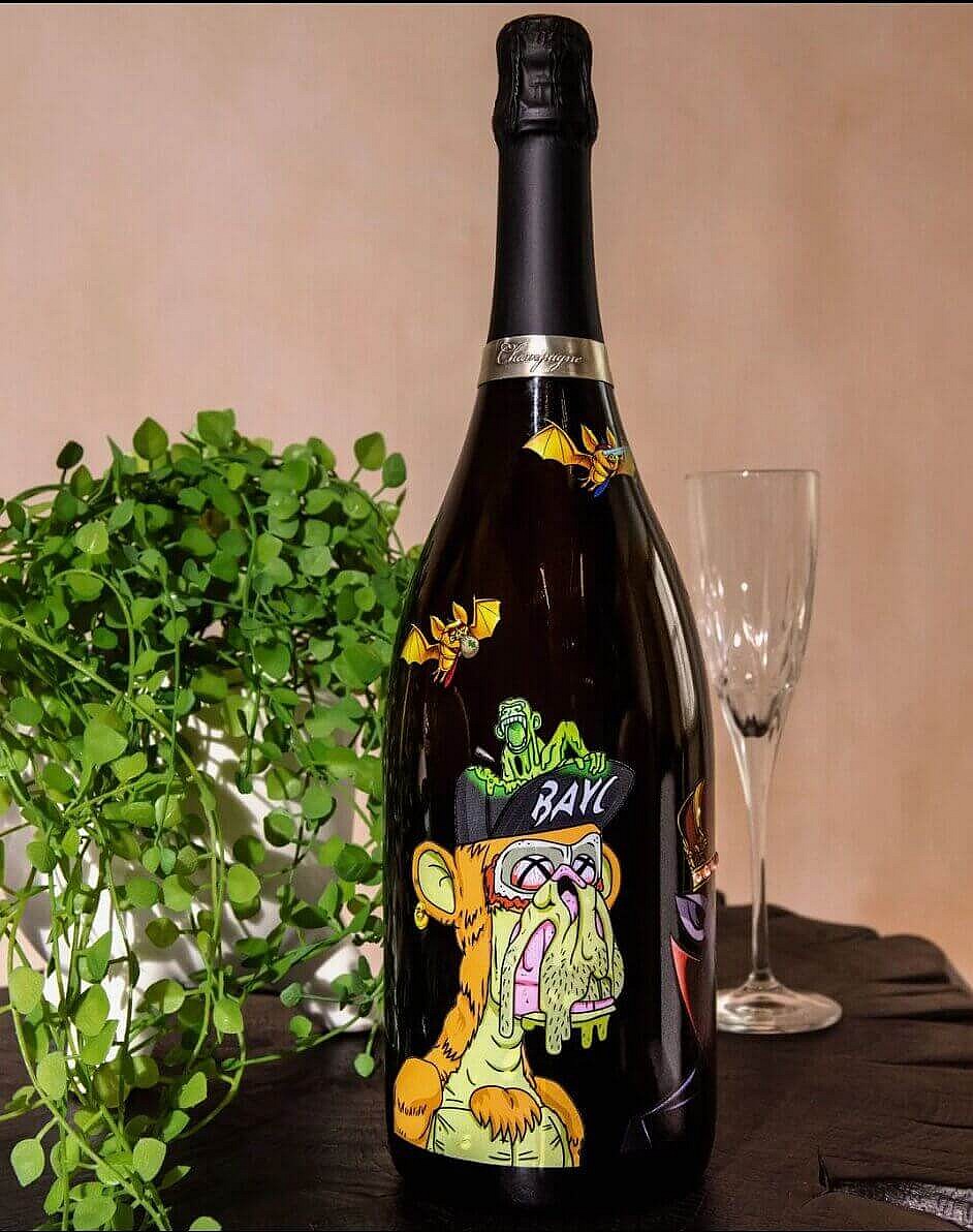 Our final and most expensive champagne bottle sold at $2.5 million at auction, but wasn’t just due to the champagne inside the bottle. The Avenue Foch 2017 was offered with an NFT that gives the owner the digital art and intellectual property rights to an image also known as the Bored Ape Mutant, along with other cartoon figures on the bottle. The brand Champagne Avenue Foch is relatively new, made from Premier Cru grapes in Chamery.