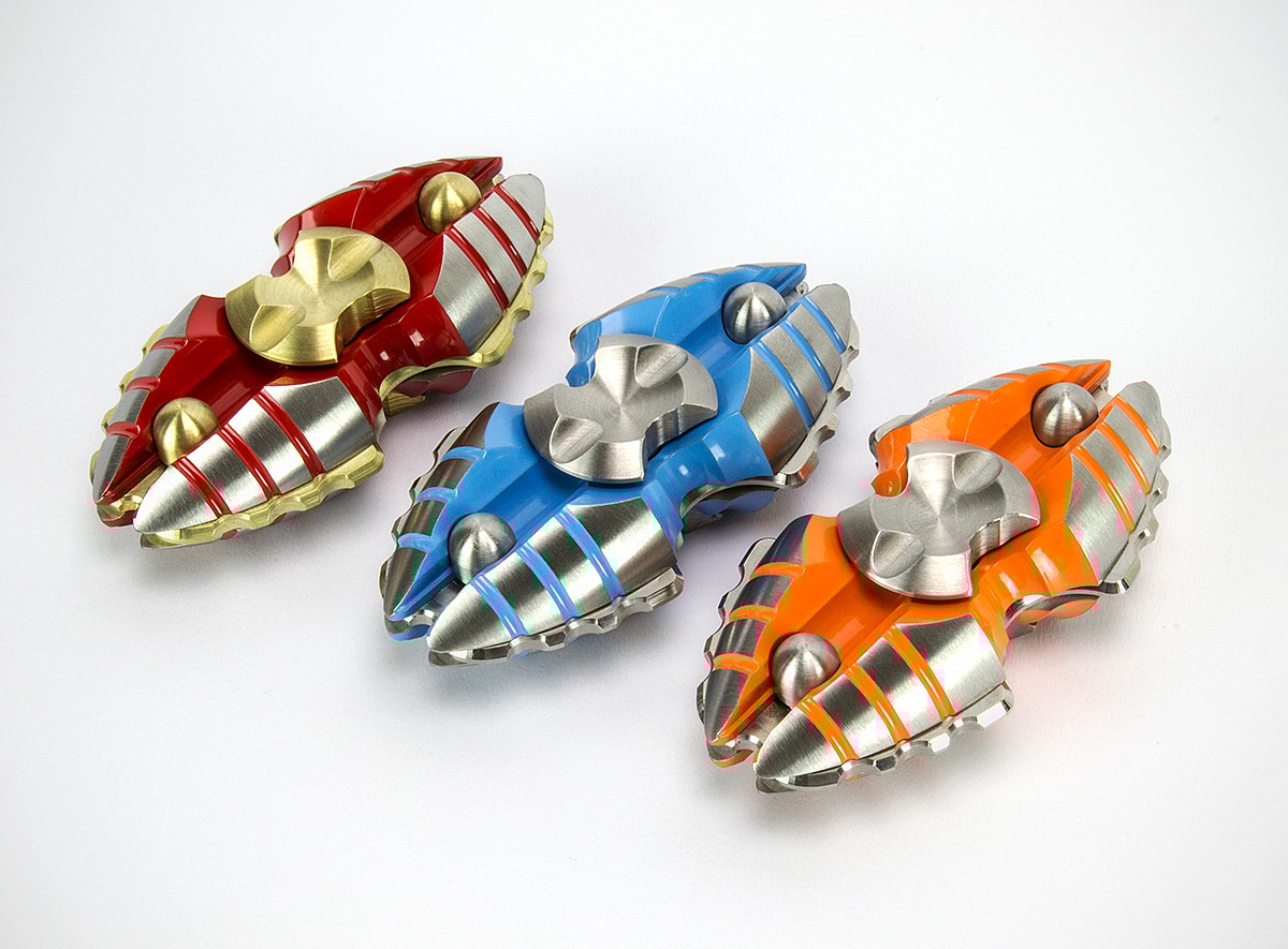 This is definitely a unique design when it comes to fidget spinners. Personally, I imagine that they’re little beetles from the shape, but they’re in fact high-end fidgets that were made by machinist and sculptor, Chris Bathgate. Bathgate has a collection of gorgeous, hand-machined fidgets, and this is just one of his many collaborations.