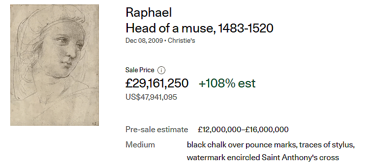 Artwork already sells for a high price, but one of the most expensive pencil drawings that was auctioned off was in 2009 for $48 million and it was Raphael’s “Head of a Muse” at Christie’s.