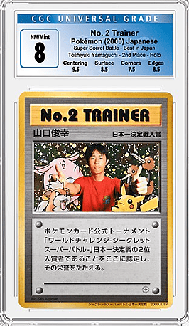 This Japanese language card is missing a stamp in its bottom right corner, making it a scarce find. The card was sold for $65,100 in October 2020.