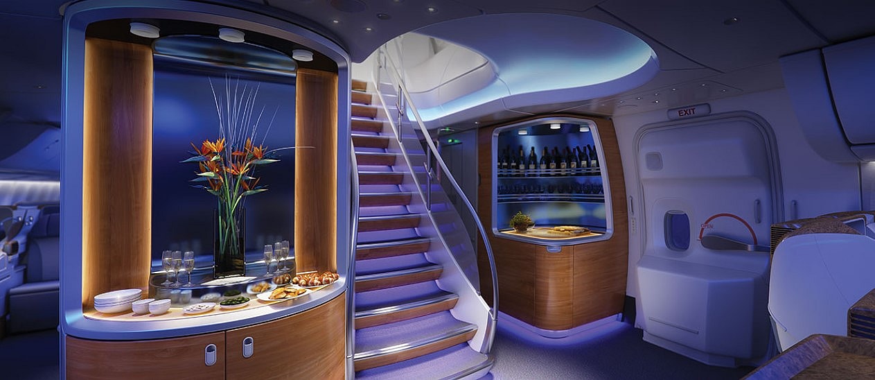 Last but surely not least is the most expensive private jet in the world, the Airbus A380. The wide-body airliner is the largest and the full-length double-deck jet. The jet can be customized into an opulent interior that can feature multiple decks, luxurious suites, a conference room, and even a personal spa.