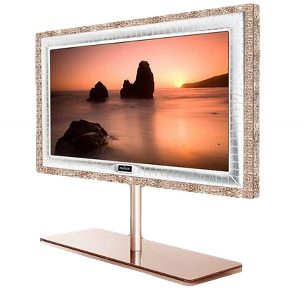 This ridiculously fashion-over-function TV from Stuart Hughes is a 55-inch TV covered in 28 kilos of 18k rose gold. It also comes studded with many precious gemstones, including sunstone and amethyst. The TV is also covered partly with alligator skin. The TV is priced at a whopping $2.5 million, and it is currently our final selection for the most expensive TVs in the world.