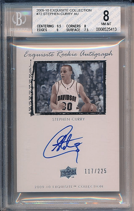 This card is part of the highly sought-after Exquisite Collection series, and features an “exquisite rookie autograph” from Curry front and center. With only 225 copies ever produced, this card is a rare find and highly valuable, with an estimated value of over $30,000.