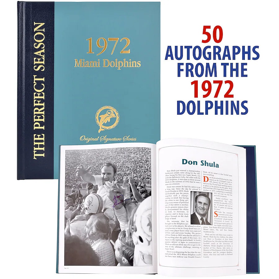 Ah, the perfect season. 1972 Miami Dolphins are the only team to achieve this feat, and other NFL teams have been struggling to reach this milestone ever since. The New England Patriots came the closest, with a 16-0 perfect regular season record, but they lost it all in a defeat to the New York Giants in the Super Bowl. If you want a talking piece to add to your home, consider this coffee table book with all 50 autographs from the ’72 Dolphins.