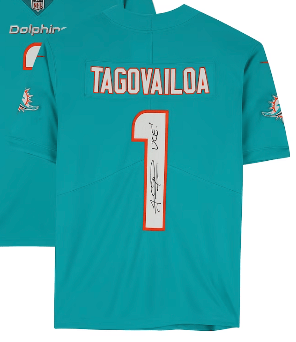 “Tua! Tua! Tua!” I chant this mantra before every Miami Dolphins game, and it’s no wonder why. Tua Tagovailoa has been stunning the competition with accurate and quick throws, and since he’s the only left-handed quarterback in the NFL right now, he brings a unique perspective to the quarterback position. If you’re a super fan of Tua like me, this signed jersey would fit perfectly in your “fan” cave. Or, should I say “fin” cave?