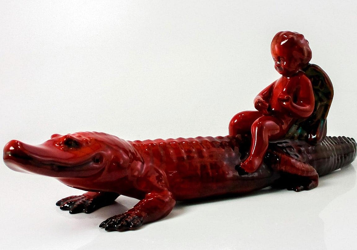 While the company mainly focuses on dinnerware, they do have some outstanding ceramic animals that can be found, like this incredibly rare Boy on Crocodile figure. There are a few around with different colors, with the Flambe variation being upwards of $32,000, which was sold through Lion and Unicorn in 2022.