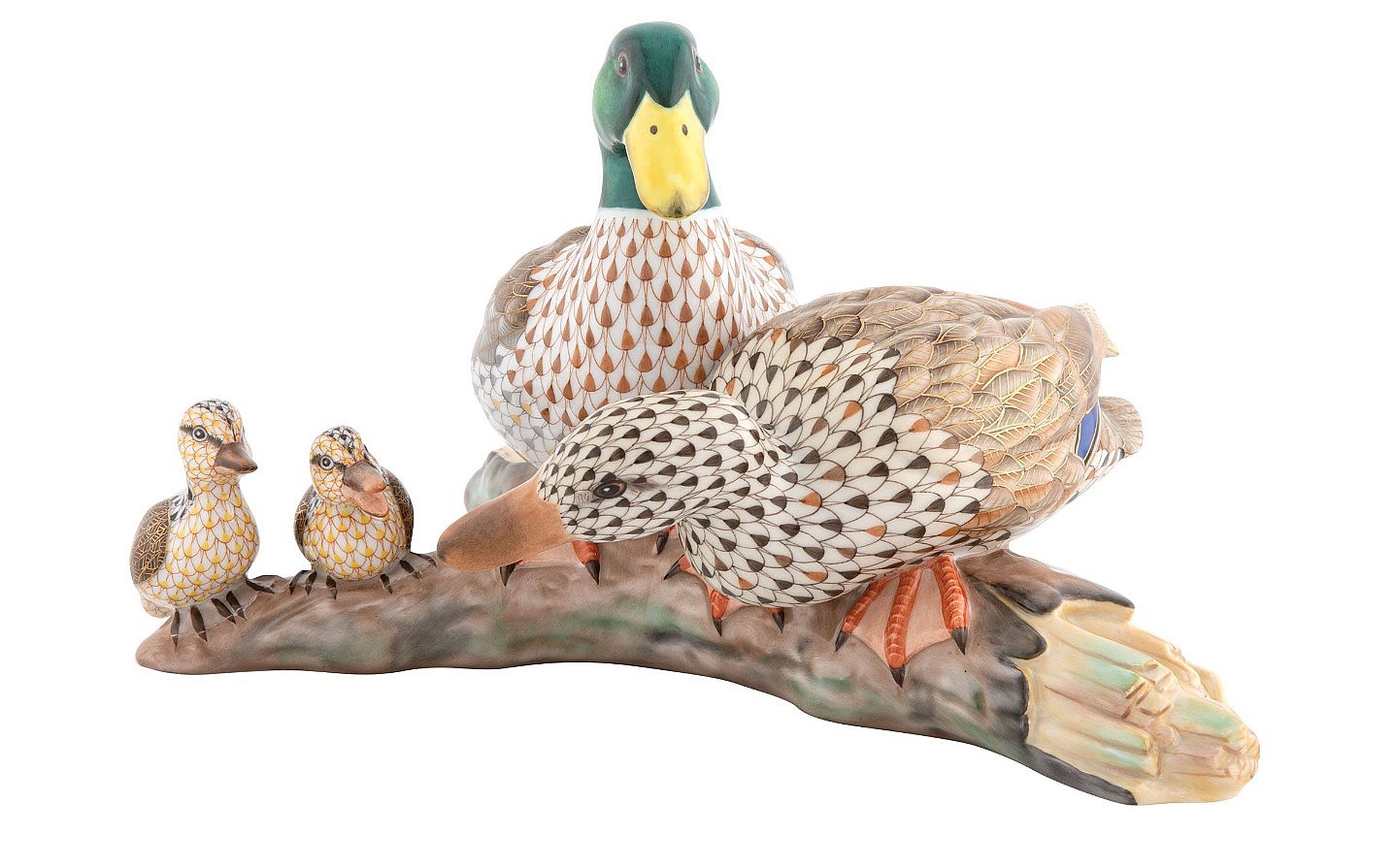 Since then, they’ve crafted unique art and designs with their smooth white porcelain and hand-painted designs. They make tabletop dishes, accessories like cases and coasters, and ceramic animals, with some being worth over $6,000. One fine example is this beautifully created ceramic Mallard Duck family that shows the parents and two babies.
