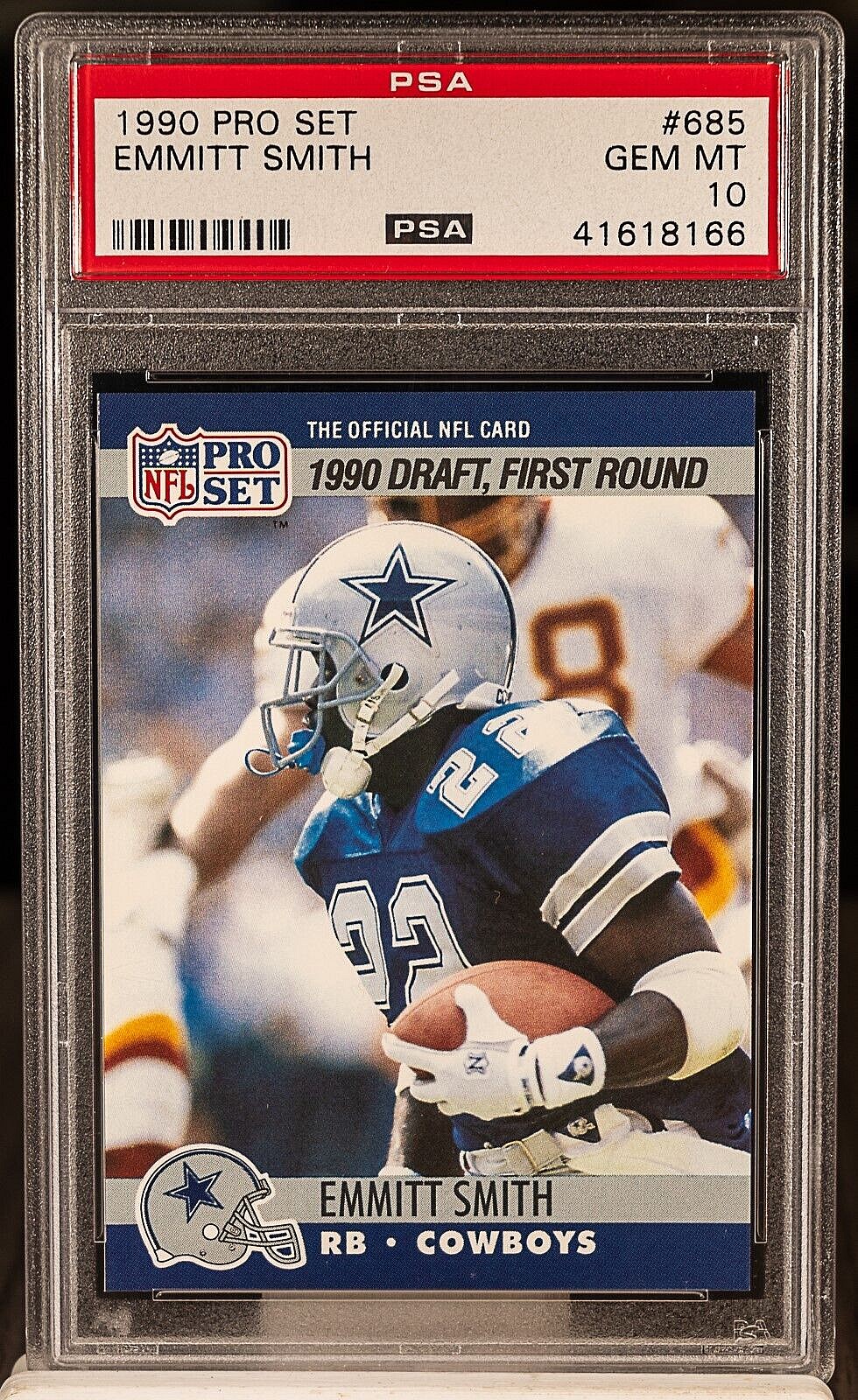 As we wrap up our review for August 2023, the spotlight undeniably falls on the 1990 Score Emmitt Smith card, reaching an outstanding sale price of $2,150, notably standing out amongst the array of American football collectibles. Despite a relatively ample PSA 10 population of 766, the fervor of 31 bids showcased the unwavering allure Emmitt Smith holds for enthusiasts.