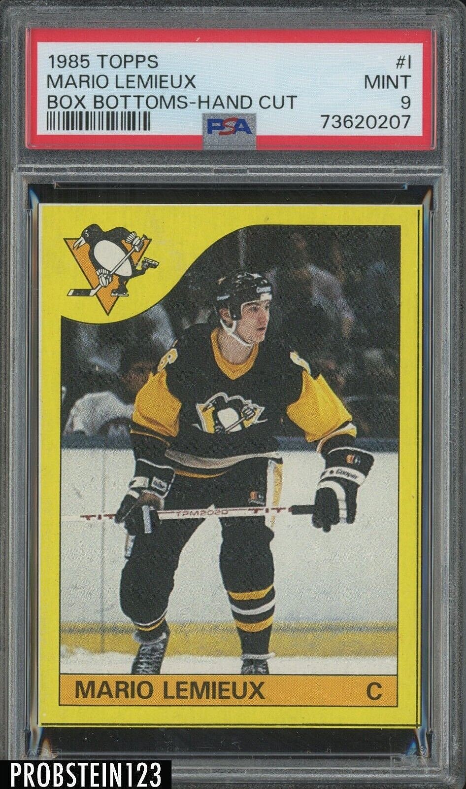 1. 1985 Topps Box Bottoms Mario Lemieux RC PSA 9, $4,999