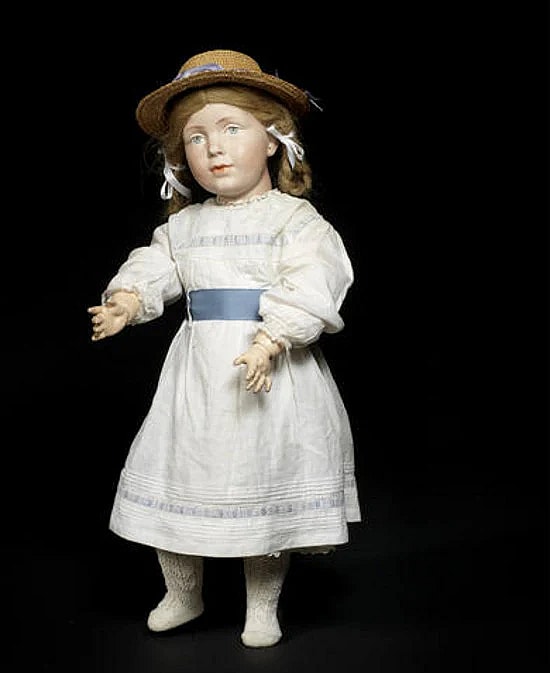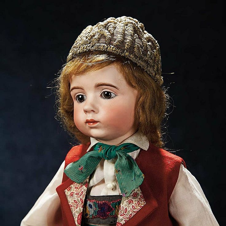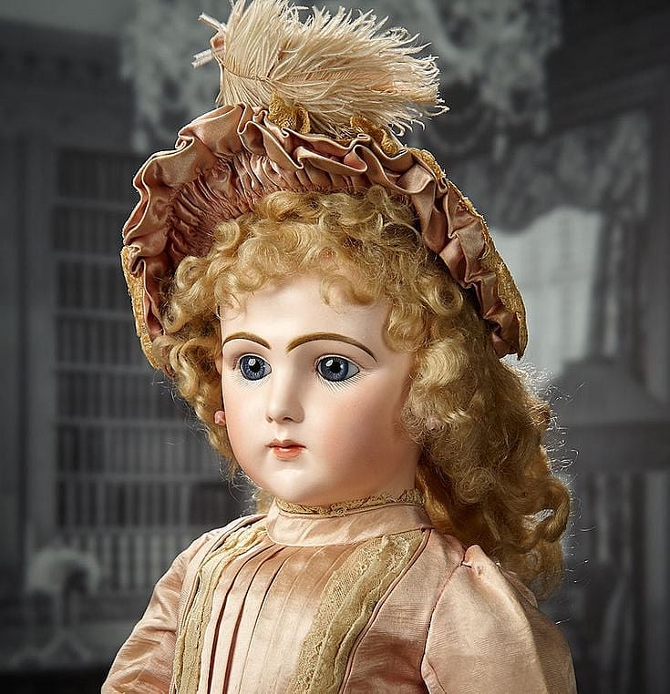 The French doll’s body was crafted by Aristodeme Botta, realistically depicting a young child. The doll is clothed in a couturier costume and spent nearly 50 years in a Swiss museum before hitting the market in 2014, setting a world record at that time when he sold for $300,000.