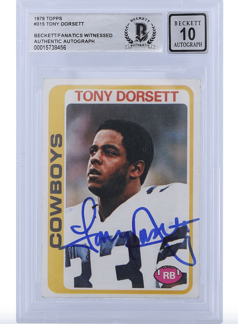 10. Tony Dorsett Autographed 1978 Topps #315 Authenticated 10 Rookie Card, $280