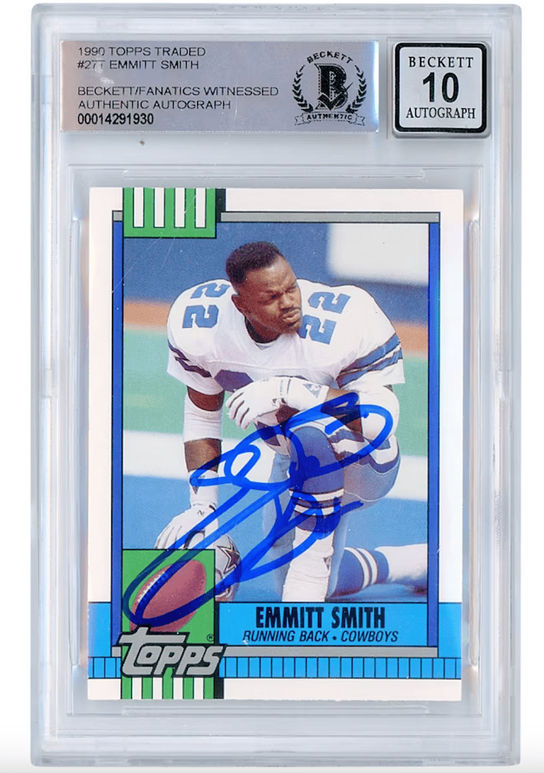 6. Emmitt Smith Autographed 1990 Topps Traded #27T Authenticated 10 Rookie Card, $530