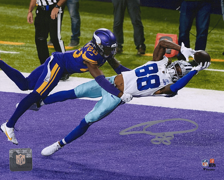Not only is this an impressive catch by CeeDee Lamb, but a perfect addition to your wall of Cowboys memorabilia. Or you can add it to your desk at work and show your Dallas Cowboys pride. Signed by Lamb, this 8″x10″ photo is a testament to how good the Cowboys are.