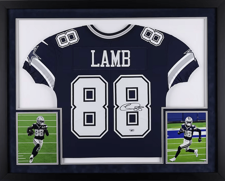 Last but certainly not least on our list of the most valuable Dallas Cowboys collectibles is CeeDee Lamb’s autographed jersey, complete with a frame and action pictures. This wide receiver is making moves in the NFL, and could have a great career ahead of him, which would make this collectible even more valuable in the future.