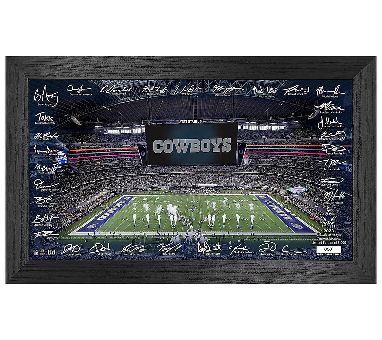 A perfect edition to your Dallas fan cave, the Gridiron Panoramic Photo is a limited edition featuring facsimile signatures from the Dallas Cowboys. All of the signatures surround a glossy photo of their home stadium, showcasing the beauty of their franchise.