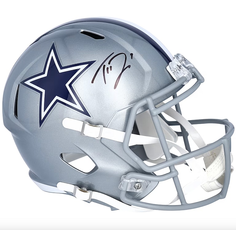 Number nine on our list of the most valuable Dallas Cowboys collectibles is a Trevon Diggs autographed helmet. Trevon Diggs is cornerback for the Dallas Cowboys, previously playing college football for Alabama. Since this is a full-size helmet, it may be a great centerpiece for your collection.