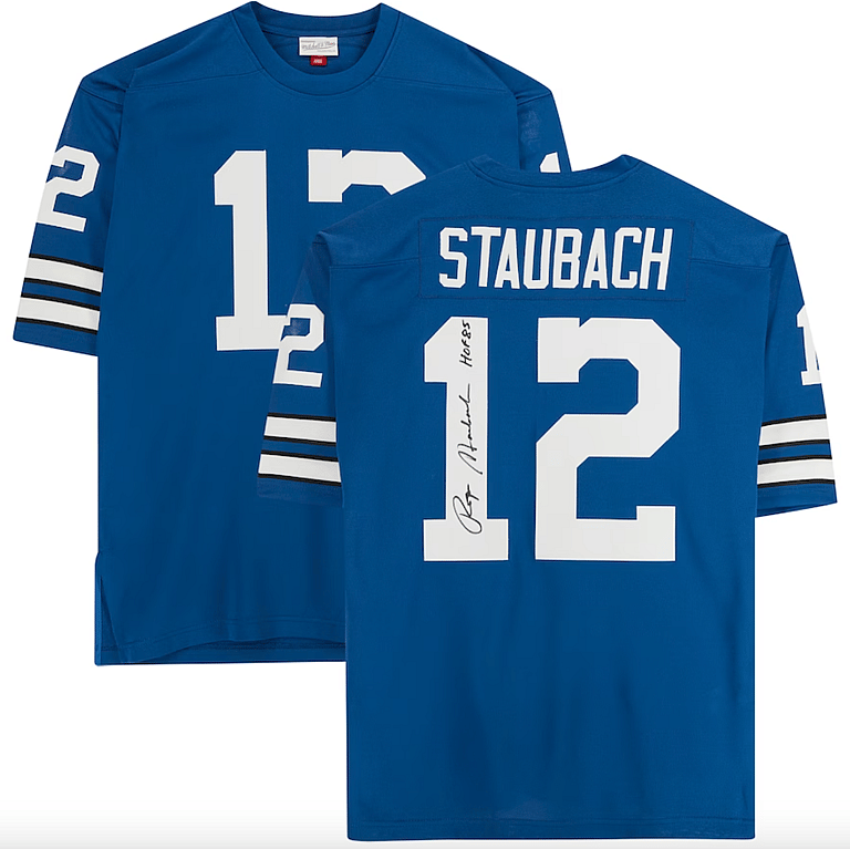 4. Roger Staubch Autographed Blue Authenticated Jersey with “HOF 85” Inscription, $650