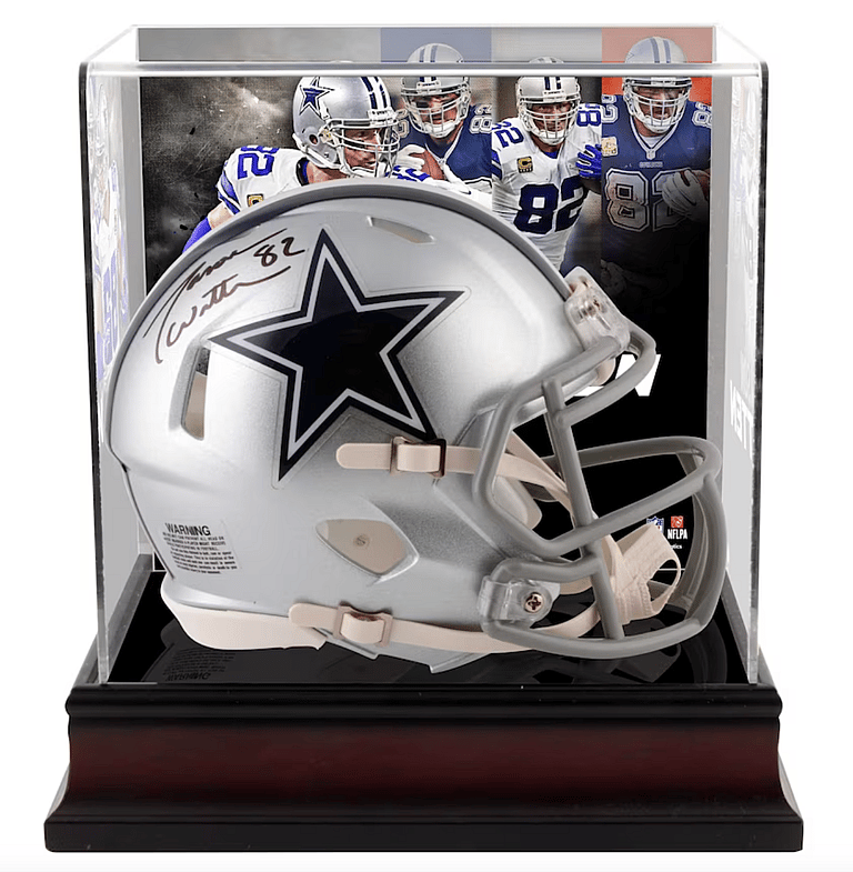 If you enjoy Jason Witten and have already gotten a signed photo, why not add to the collection with a Witten signed mini-helmet already placed in a collector’s case. This Cowboys collectible does not take up as much room as a full-size helmet, and can fit nicely on a shelf or on a desk. Jason Witten is retired now, but still participates in football by coaching for the Liberty Christian School.