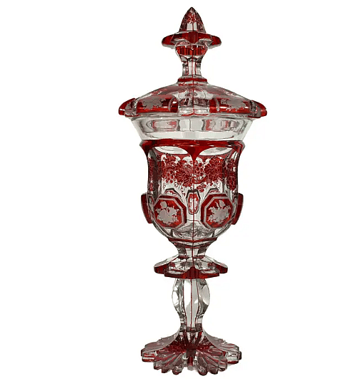4. Bohemian Ruby Red Engraved Art Glass, $6,424