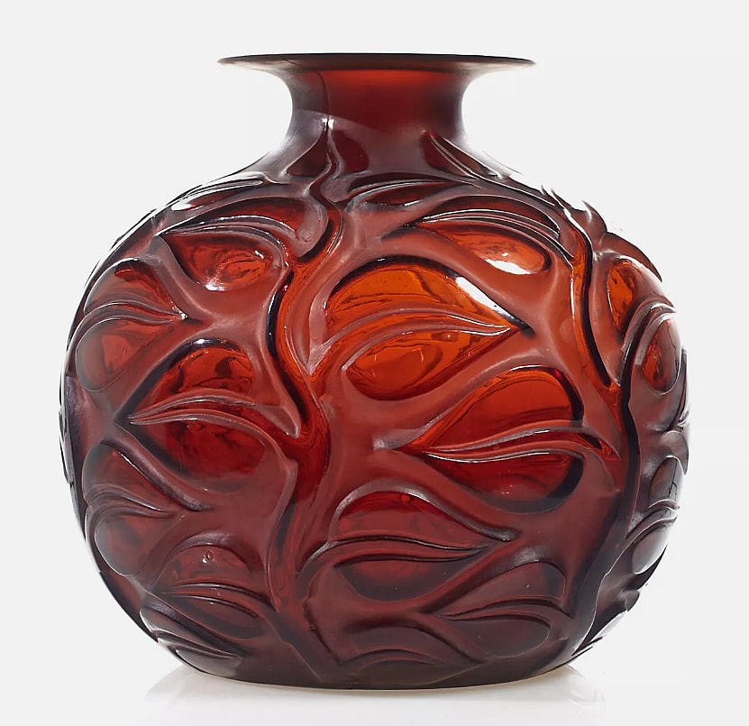 2. Rene Lalique Amber Red Sophora Glass Vase, $7,195