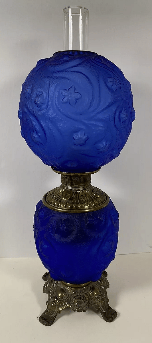 The Fostoria Glass Company is responsible for some of the most wanted rare antique glass for collectors. The manufacturer was known for its pressed, blown, and hand-molded glass and tableware. This antique Victorian Parlor Lamp from the 19th century shows just how exquisite their craft is. The deep blue glass is carved with flowers and swirls for a beautiful light effect once lit. The lamp is worth over $3,000 on secondary marketplaces like eBay.