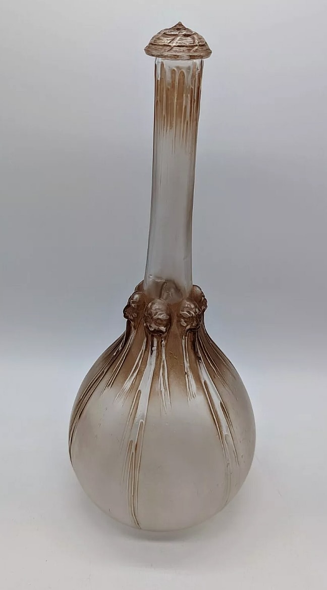 Lalique is well-known for his rare antique glassware, with one being this carafe. The tableware was created in 1914 by mold-pressed. The clear glass is part of the Art Nouveau era that highlights experimentation. The glass has six heads with a pink Patina hue and a stopper. This carafe is worth over $2,000 and is one of the most wanted rare antique glass that collectors can find.