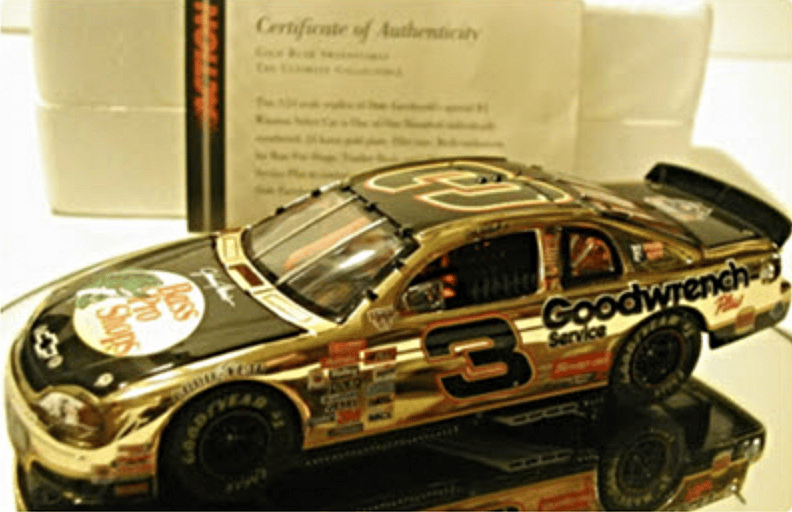 The Dale Earnhardt 1998 Daytona Winner Gold Elite edition diecast is without a doubt the most valuable regular production NASCAR collectibles diecast available when prototype and sample diecasts are taken out of the equation. Only 100 of this highly sought-after diecast are produced, making it incredibly uncommon.
