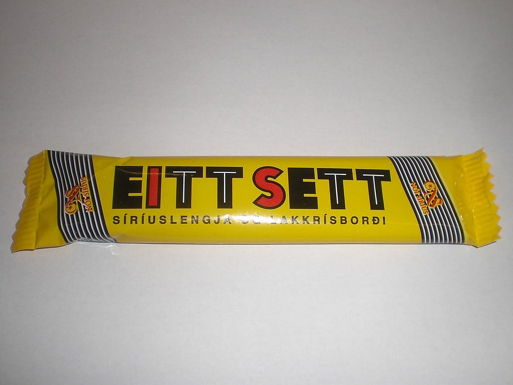 Eitt Sett, also known as one of Iceland’s oldest chocolate bars, is created by the company Noa Sirius. The rare part of this candy is what it’s made out of — licorice and milk chocolate. The chocolate bar is wrapped in a layer of licorice, making for an interesting tasting and textural experience. There are several other renditions of Eitt Sett, including bite-sized pieces that come in a bag.