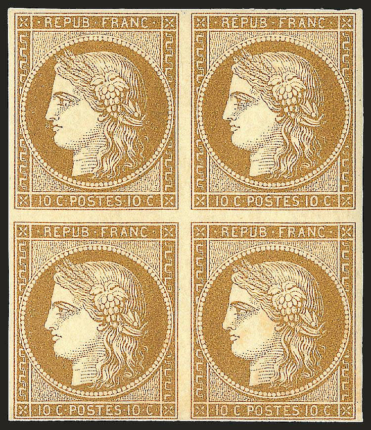 2. 10c Bisteron Yellowish Tete-Beche Block (1849), $90,000