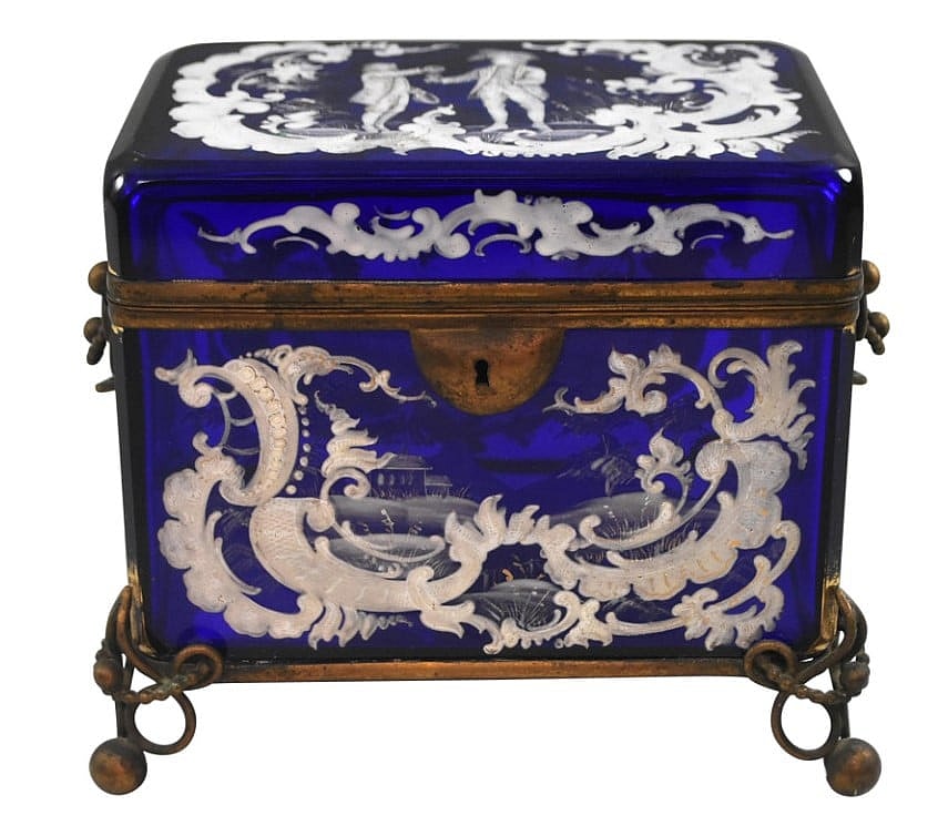 While this, like wood, has been around through time, new techniques in the Industrial Revolution made these boxes blossom, especially in the Art Nouveau era from 1890 to 1910. These boxes remained popular throughout the 20th century.