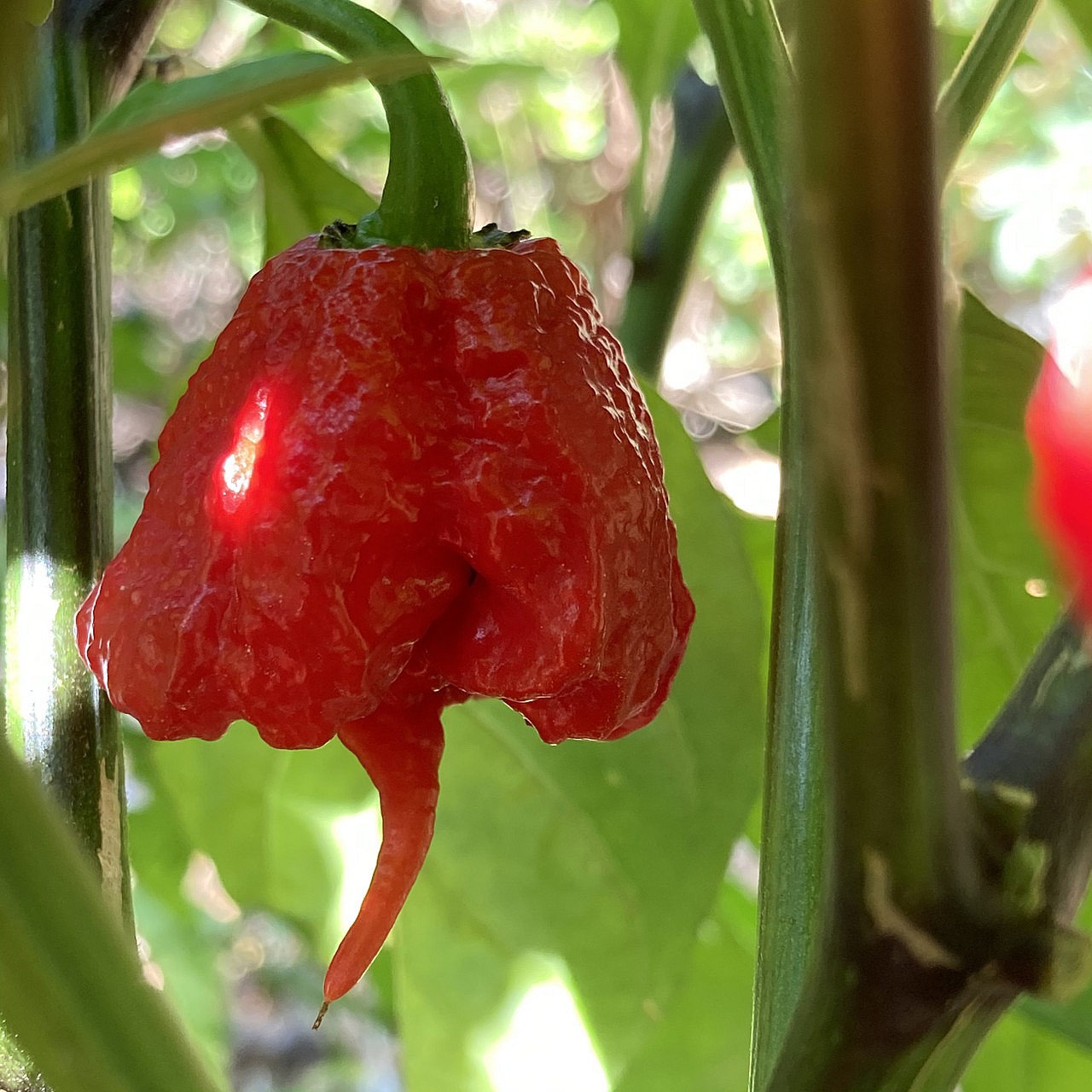 One of the most recognizable hottest peppers in the world is the Carolina Reaper, which held the title of “World’s Hottest Pepper” for a decade. Ed Currie developed the Reaper by crossing the Pakistani Naga Viper with a sweet red Habanero pepper. They have a fiery red color with wrinkly skin that comes to a sharp point at the end.