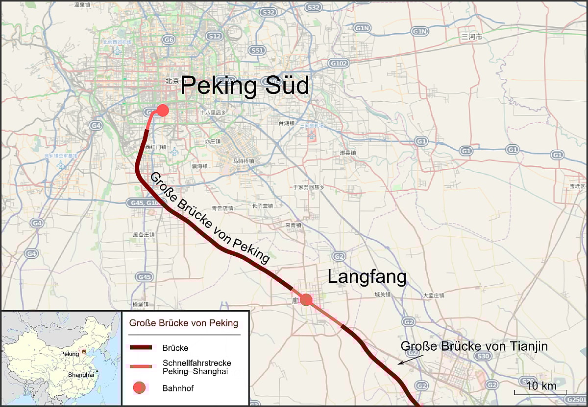 While not the largest bridge in the world, Beijing Grand Bridge construction began in 2006 as part of the Beijing-Tianjin Intercity Railway project, which aimed to improve traffic between the two major metropolitan centers. The bridge, which was finished in 2010, is a prime example of China’s commitment to technological innovation and infrastructural development.