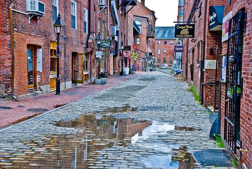 Portland, the most populous city in Maine, is set on a peninsula extending out to the Casco Bay. The Old Port contains fishing wharves, converted warehouses, restaurants and many shops. Nearby, the Western Promenade is a public park on top of a bluff with views of the river and mountains. The surrounding district is called the West End, which contains many Victorian-era homes.